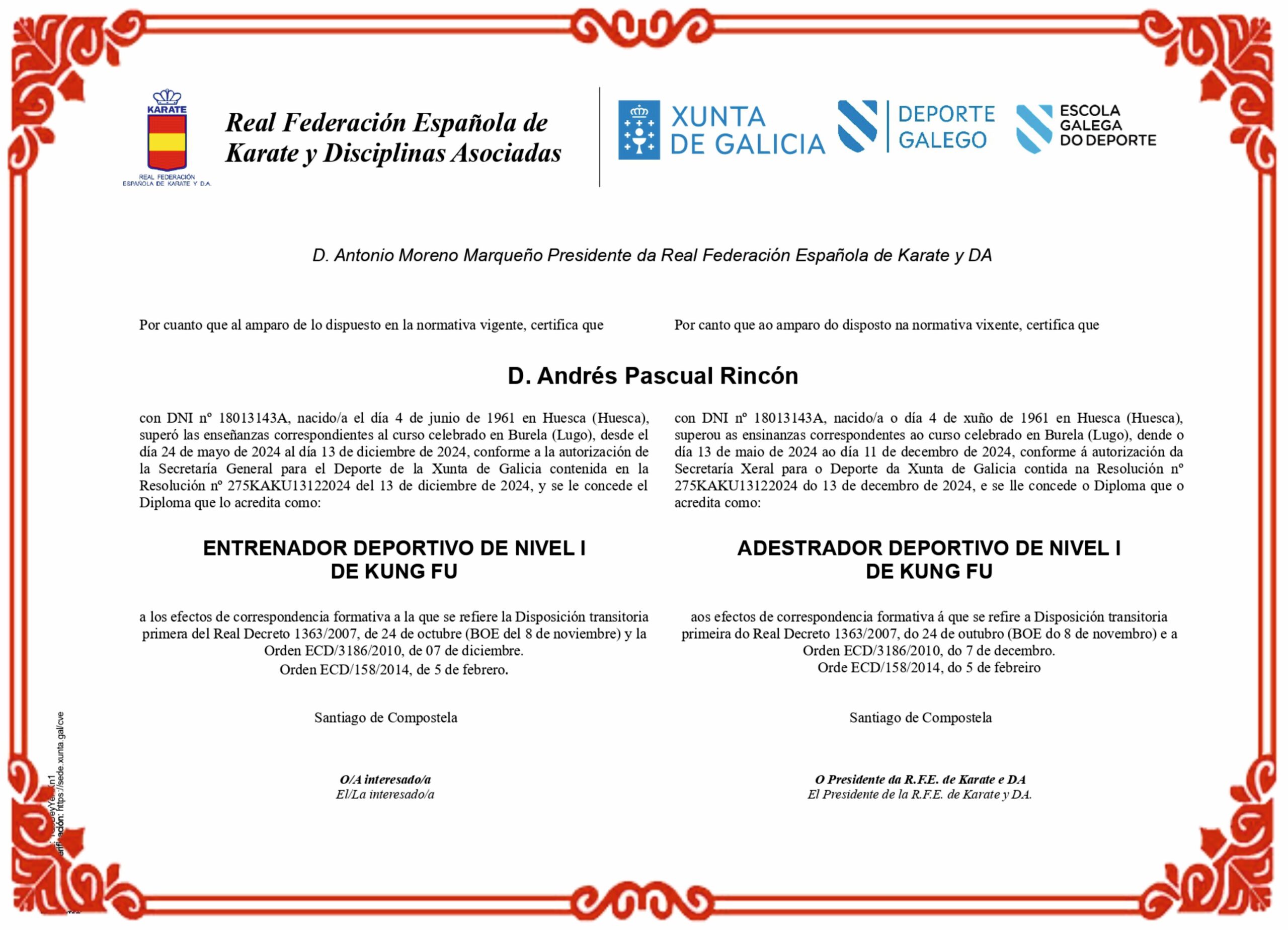 Las titulaciones ofrecidas están emitidas por el Gobierno de España, Ministerio de Deportes y Consejo Superior de Deportes.