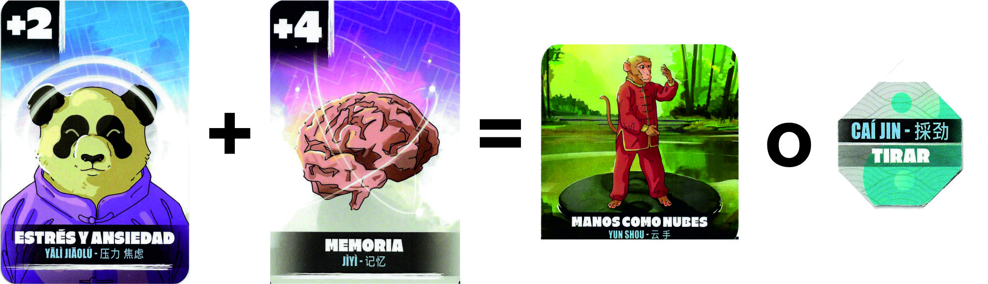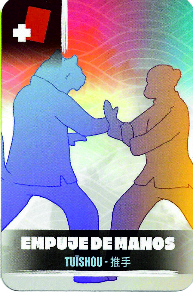 Esta carta lleva asociada otra carta de valor negativo -1 o -2. Los demás jugadores deberán presentar una o varias cartas positivas que superen el valor absoluto de la negativa. En caso de no poder hacer frente al Tui Shou deberás desprenderte de una carta de forma o una ficha técnica. Una carta de Tui Shou contrarresta esta accion.