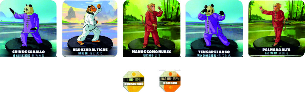 El juego consiste en reunir 5 posiciones de la forma y 2 fichas de técnicas, todas distintas. Estarán en la mesa boca abajo para que los demás no sepan lo que tienes…