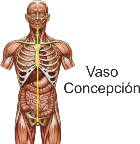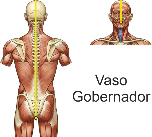 Los meridianos Vaso Concepción (VC) y Vaso Gobernador (VG) se consideran el eje del cuerpo. El VC se desarrolla en la parte delantera, representa los aspectos Yin, garantiza la calidad de las sustancias nutritivas y su circulación. VG se desarrolla en la parte trasera, hasta la cabeza, atravesándola, relacionado con las energías Yang, permite la rectitud, gobierna y controla, proporciona energía a todos los meridianos Yang, ayuda al cerebro y permite la apertura de los orificios, es decir, de los sentidos.